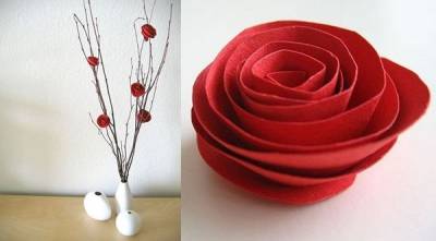 Для создания розы тебе понадобятся: Цветная бумага (твоя роза может быть ярко красной, розовой и даже синей); Ножницы; Простой карандаш; Клей. 1. Вырежи из листа цветной бумаги квадрат и нарисую на нем такую спиральную фигуру. 2. Вырежи спираль. 3. Начни закручивать розочку. Слишком сильно не прижимай части спирали друг к другу, оставляй пространство. Конец розочки приклей к основанию клеем. Если взять веточки и приклеить к ним несколько розочек, то может получится необычный букет, которым можно украсить комнату.