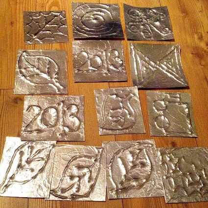 Из фольги очень удобно делать объемные картинки. Примерно такого плана: Но мы уверены у тебя они получатся гораздо интереснее и красивее, иллюстрация нужна чтобы ты поняла суть. Для работы тебе понадобится: картон или плотная бумага для основы, фольга, и клей пва в тюбике с узким носиком. Клей нужен для создания объемного рисунка. Им нужно нанести рисунок на основу - картонку или плотную бумагу. Клей размазывать не нужно, нужно дать ему высохнуть, чтобы он сохранил форму. После этого можно положить кусочек фольги сверху на рисунок и аккуратно пригладить, разгладить все неровности с помощью кисточки. Чтобы картинка смотрелась лучше нужно взять кусок фольги чуть большего размера, чем основа, чтобы загнуть фольгу за края. Таким образом можно делать простые картинки или написать пожелание подруге на день рождения, все в твоих руках. Фантазируй и твори.